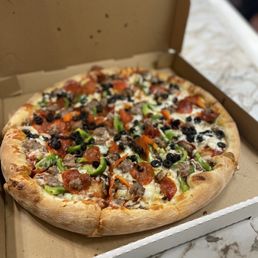 This is a very convenient and quick takeout spot for those craving pizza. They have slices at the ready with toppings you can add on at an affordable cost. The people working here are also very kind, and attentive. Ordering whole pizzas are also easy, and the Sabrosa special is the perfect combination pizza for a night in. The inside has a few tables and is a welcoming vibe.